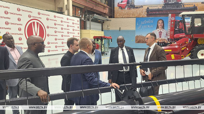 来宾们参观了戈梅利农机厂的展区、生产车间和主输送机。布莱特·鲁瓦米拉马表示,乌干达与白俄罗斯保持着合作伙伴关系。然而,这是代表团首次访问该企业。代表团主要关注的是农业机械工业园区。