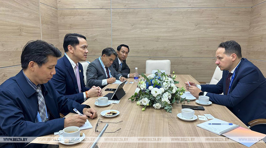 在索契举行的"金融科技城-2025"第十届创新金融科技论坛期间,白俄罗斯国家银行董事会第一副主席亚历山大·叶戈罗夫与老挝银行副行长苏里萨克·塔姆努翁举行会谈。