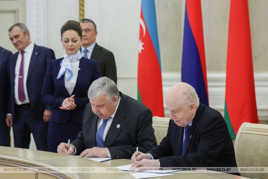 独联体秘书长谢尔盖·列别捷夫和世界人民大会秘书长安德烈·别利亚尼诺夫共同签署了文件。