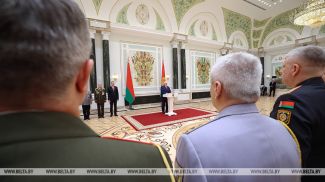 白通社明斯克2月23日电 白通社报道。白俄罗斯总统亚历山大・卢卡申科于 2 月 23 日在独立宫举行的隆重仪式上,为高级军官授予将官军衔。