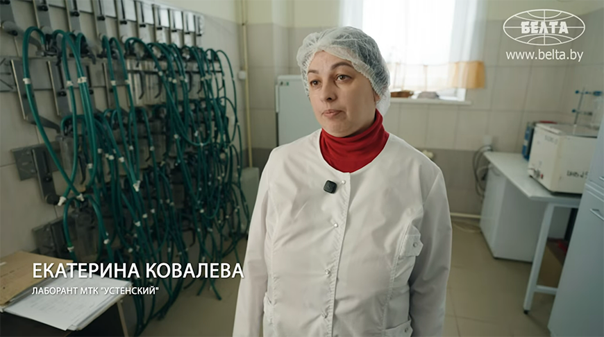 “乌斯坚斯基”奶牛场场长然娜·特罗菲莫娃解释了专家为何选择丹麦牛:“为了在白俄罗斯培育出红色白俄罗斯品种。这些动物的价值何在?在于它们能产高脂牛奶。乳脂率从4.4%到6%不等。再加上蛋白质——3.3及以上。”