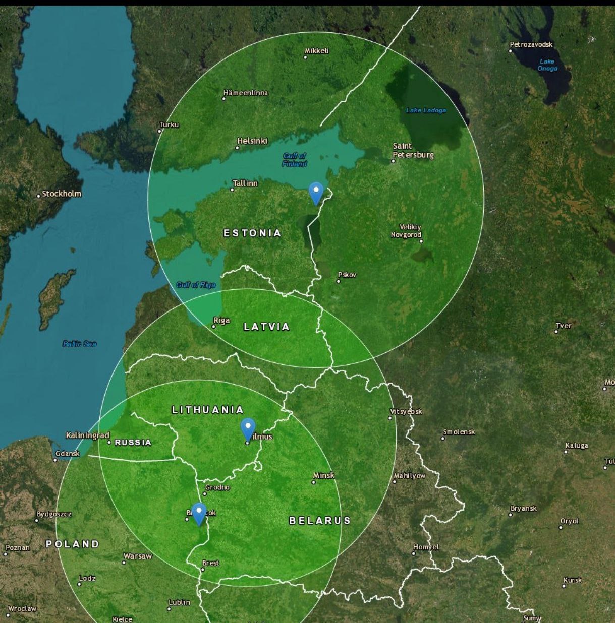 如果我们假设使用来自波兰-白俄罗斯边境附近地区和波罗的海国家边境的导弹,那么我们就能在概览图上看到破坏范围。
