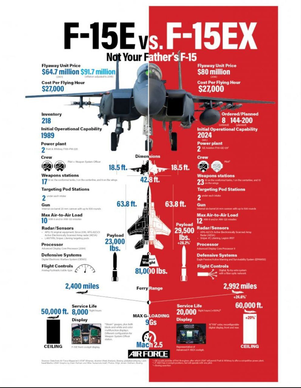 值得注意的是,F-15EX是专为沙特阿拉伯开发的,与F-15E有显著区别。