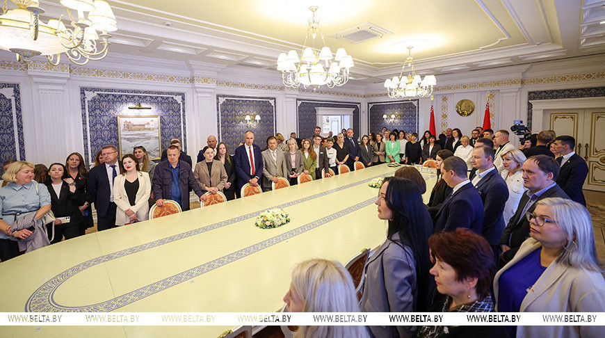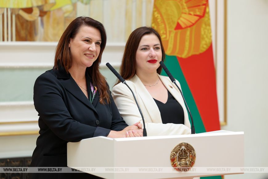 格罗德诺氮肥厂意识形态部组织工作指导员安热莉卡·列奥诺娃激动地表示:"初临独立宫令我完全沉醉于这种美感与和谐之中。今天是我人生中庄严而幸福的时刻,正通过视频与未能前来的同事们实时分享这份荣耀。作为国家农业肥料主要生产商,我们企业不仅夯实白俄罗斯粮食安全根基,更将产品远销海外,这是全体员工的骄傲。»