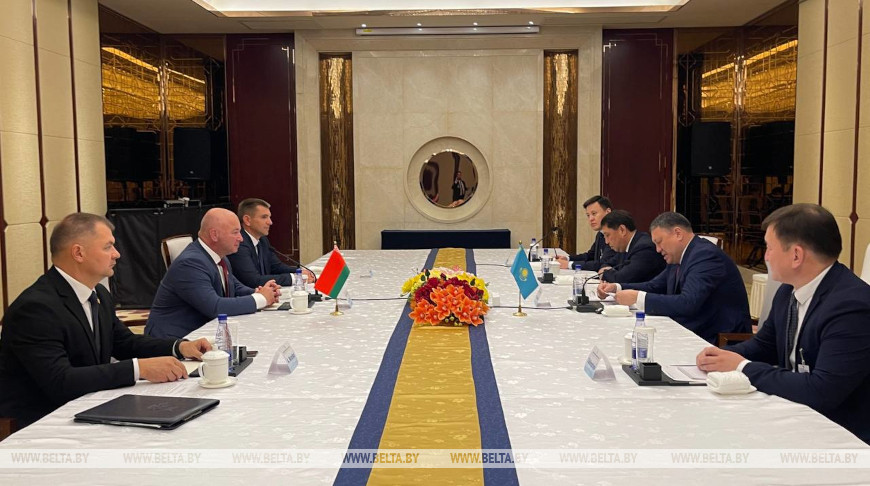 在白俄罗斯调查委员会主席德米特里·戈拉率领的代表团与哈萨克斯坦内务部部长叶尔兰·萨登诺夫率领的代表团之间,于中国连云港举行的全球公共安全合作论坛期间举行了工作会议。