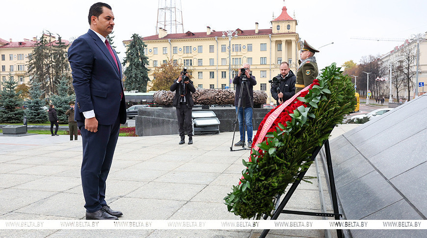 利比亚国民军副总司令向明斯克胜利纪念碑敬献花圈