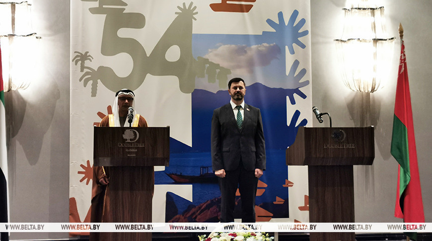 这位外交官在致辞中说道:“我们很高兴欢迎各位参加此次庆祝阿联酋建国54周年的活动,今年的主题是‘团结’。各位的到来体现了阿联酋与白俄罗斯之间深厚的友谊——白俄罗斯是一个美丽的国家,拥有美丽的人民、美好的社会、安全的局势和远大的抱负。”