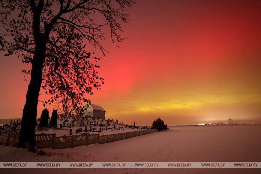 格罗德诺地区极光: 白通社摄影师镜头下的景象