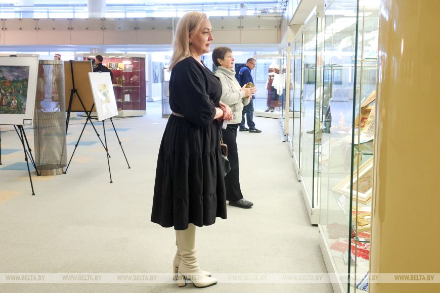 观众还可观赏来自白俄罗斯国家科学院白俄罗斯文化、语言与文学研究中心、白俄罗斯共和国收藏家协会、白俄罗斯艺术家联盟、斯卢茨克腰带国营企业等机构的藏品。收藏家协会成员维克多·苏沃洛夫为展览提供了个人收藏的瓷雕作品:"我们协会长期与图书馆合作,这是我在此参与的第四个项目。此前曾参展瓷器、新年及彩票主题展览。当被问及藏品中是否有古希腊相关作品时,我发现了两位小天使雕塑、爱与美之神阿佛洛狄忒胸像以及她的三位女儿——美惠女神的雕像。据不同神话版本,她们的父亲可能是宙斯或狄俄尼索斯。"