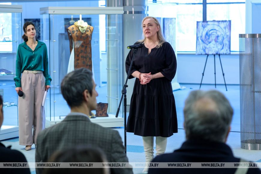 白俄罗斯国家图书馆画廊展览部项目策划主管阿丽娜·费多里希娜介绍:"探究之初便令人惊叹——希腊元素竟如此自然地融入白俄罗斯艺术。最令我震撼的是白俄罗斯艺术学院一位青年设计师的作品:以包含希腊纹饰的科洛日斯克教堂为灵感创作的服饰系列,呈现出极具现代感且意料之外的创作。艺术家费奥多尔·舒尔梅廖夫描绘赫拉克勒斯与亚马逊女战士的鲜明版画同样值得关注。"