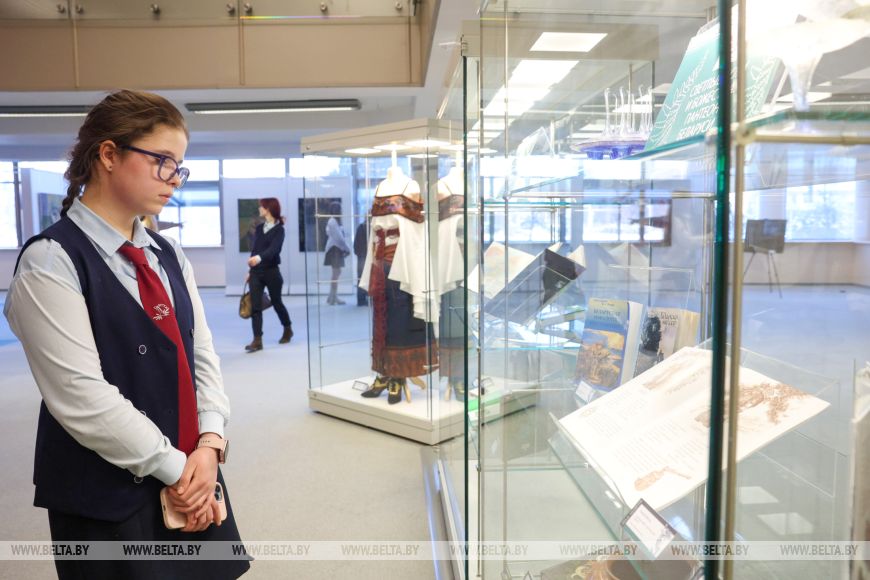 展览呈现逾200件展品,涵盖书籍文献、艺术作品及具有希腊文化印记的白俄罗斯文物:饰有希腊"回纹"几何图案的白俄罗斯民族服饰、描绘古希腊双耳瓶纹样的斯卢茨克腰带复刻品、19-20世纪白俄罗斯民间艺人创造性融合希腊纹饰的原创刺绣巾、以及留存于白俄罗斯境内的曾装饰建筑构件的木雕柱头残片。