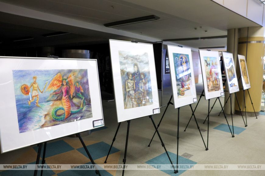 展览空间还展示了明斯克国立艺术中学学生受古希腊神话启发创作的当代艺术作品。该校教学副校长奥尔加·雷萨克介绍,学生们呈现了约20幅绘画、手工书籍及陶瓷作品。"不同年龄段的学生对白俄罗斯童话与希腊神话都抱有浓厚兴趣。他们通过阅读研究具体作品,在专业教师指导下共同创作了相关插画作品。"