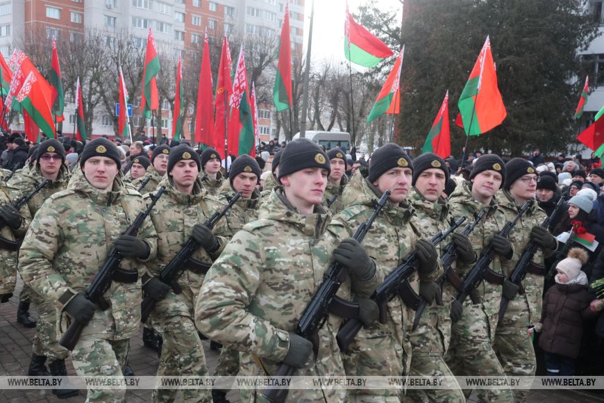 集会以莫吉廖夫卫戍部队受阅方队庄严行进结束。之后,所有参与者被邀请参加节日音乐会。
