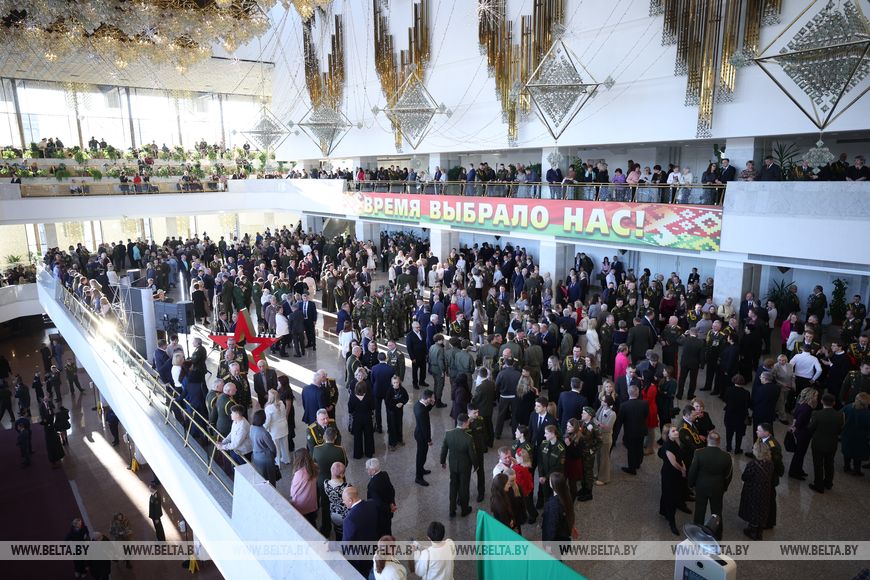 维克多·赫列宁强调,今天可以说,我们的武装力量在军事技术层面空前强大。部长指出,“但这种强大不仅体现在‘榛树’导弹系统、战术核武器部署在白俄罗斯领土上。我们的强大在于,我们有随时准备挺身而出的人民。我们清醒地认识到,战场上起决定作用的是军官和士兵。因此,我们需要祖国保卫者和武装力量日,以铭记我们所拥有的强大力量,那种无法用军备竞赛、无法用任何战术技术指标衡量的力量——这力量蕴藏于我们的人民之中。”