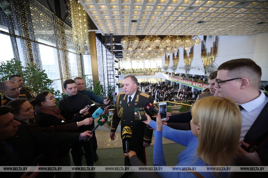 白通社明斯克2月20日电白通社报道。国防部长维克多·赫列宁在共和国宫举行的祖国保卫者和武装力量日庆祝大会前表示,白俄罗斯军队在军事技术层面空前强大,其力量蕴含于时刻准备挺身而出的人民之中。