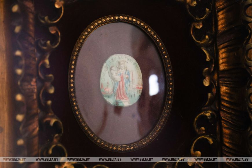 尤里・热加林介绍道:“圣像上的银质衣饰带有雕刻,上面刻有圣像捐赠者亚当・萨科维奇的名字,他是当时维尔纽斯著名的贵族。正是他出资打造了这幅圣像,它能完整保存至今,本身就是个奇迹。圣像虽经过修复,但几乎原貌未改,要知道它的历史比教堂本身还要久远” 。