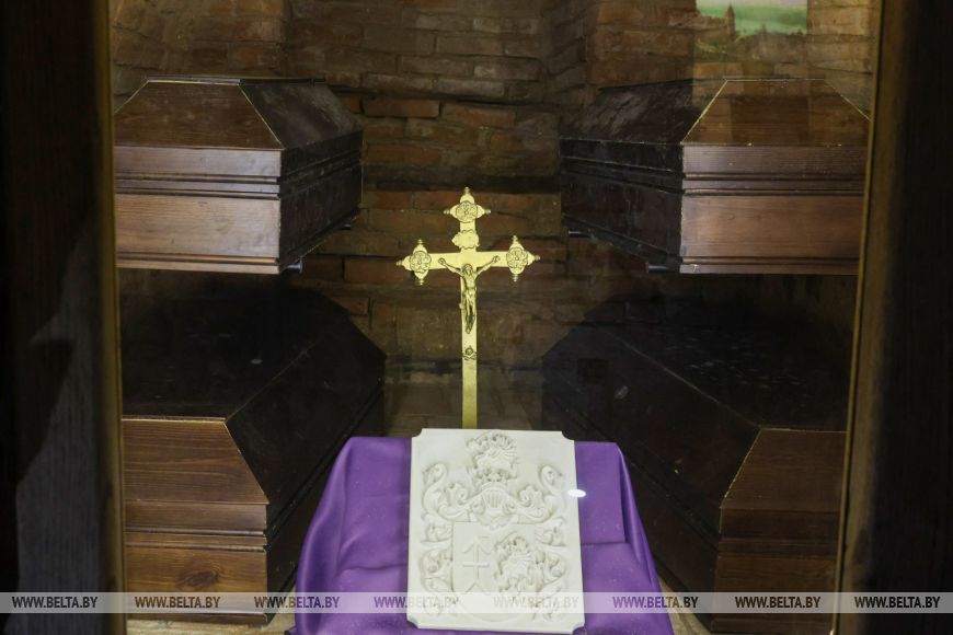 走进氛围神秘的地下墓室,这里安放着霍德克维奇家族创立者的石棺。古老的铜质铭牌早已字迹模糊,旁边刻着家族纹章…… 墓室深处还有一幅保罗・塔尔塔尼科夫的版画,是为庆祝教堂建堂 400 周年赠送的礼物。画作再现了新格鲁多克鼎盛时期的风貌:城中的法尔内教堂、鲍里斯格列布教堂、方济各会修道院及圣安东尼教堂尽收眼底。这些建筑有的留存至今,有的已湮没在历史中。