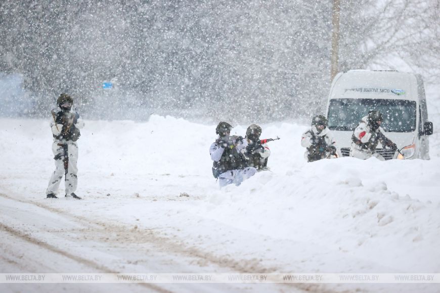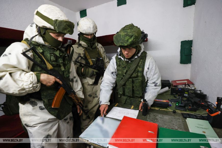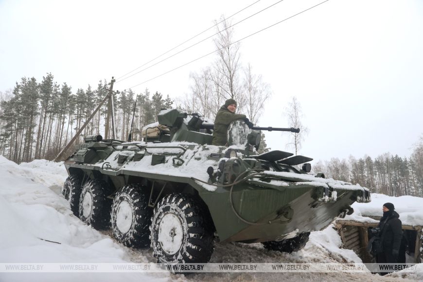 白通社沃洛任地区2月12日电 白通社报道。根据白俄罗斯总统指示开展的武装力量突击战备检查仍在继续。第120独立近卫机械化旅官兵在沃洛任地区防御枢纽部完成战术演练。