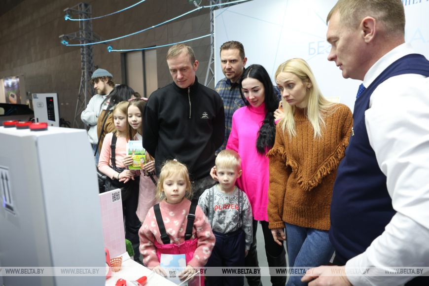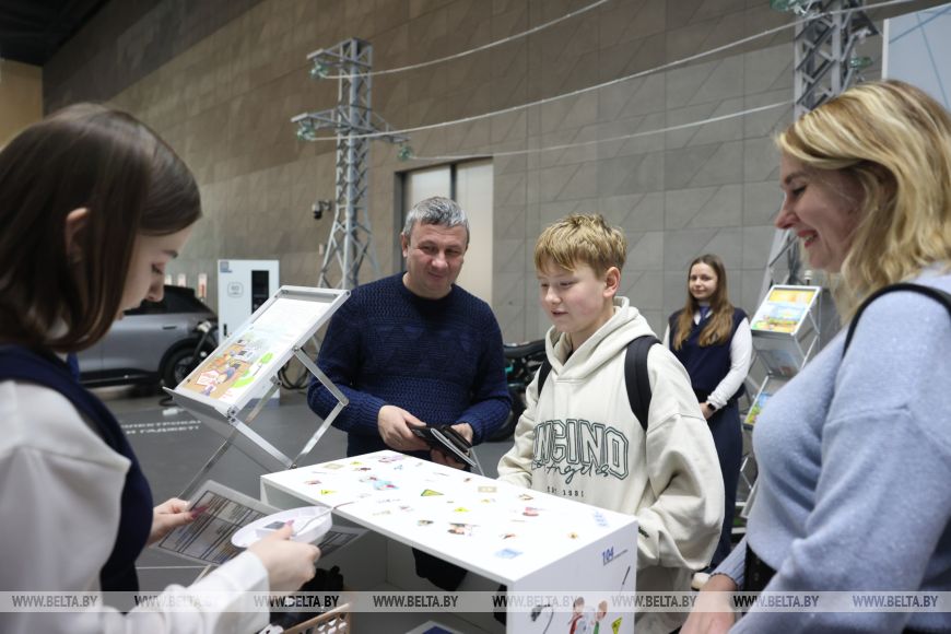 罗季翁·帕谢奇尼克与父母从博布鲁伊斯克前来观展。这位男孩分享道:"我参观了核电站模型,非常喜欢。还体验了四季变换的沉浸空间,特别喜欢夏季展区——今年夏天我刚去过乡村,这里展现的森林和悠闲漫步的动物勾起了我美好的回忆。"